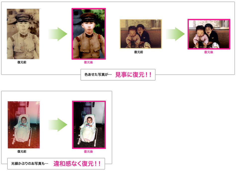 カメラのシミズ トップページ > プリント・ダビングサービス > 写真復元サービス